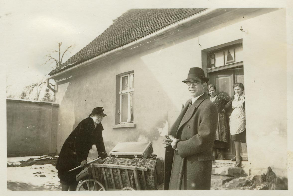 Werner K. mit seiner Mutter aus Berlin kommend bei der Ankunft in Rädigke anläßlich der Taufe des Jungen am 23. Februar 1941. Er übernahm das Amt eines Paten und blieb mir bis zu & nach meiner Übersiedlung in die Bundesrepublik 1961 in Liebe & Treue verbunden