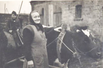 Minna Muschert mit dem Autor auf dem Mistwagen