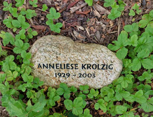 Anneliesens Stein (er stammt aus Rädigke) auf dem Strümper Friedhof. Hier ist sie wieder vereint mit ihren geliebten Eltern.