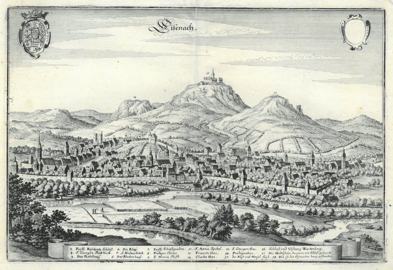 Mein gefundener Mittelpunkt richtet den Blick auf Eisenach in Thüringen. Der Merian-Stich, den ich im Katlog des Buch- & Kunstantiquariat Eurasburg fand, hängt inzwischen bei mir an der Wand.